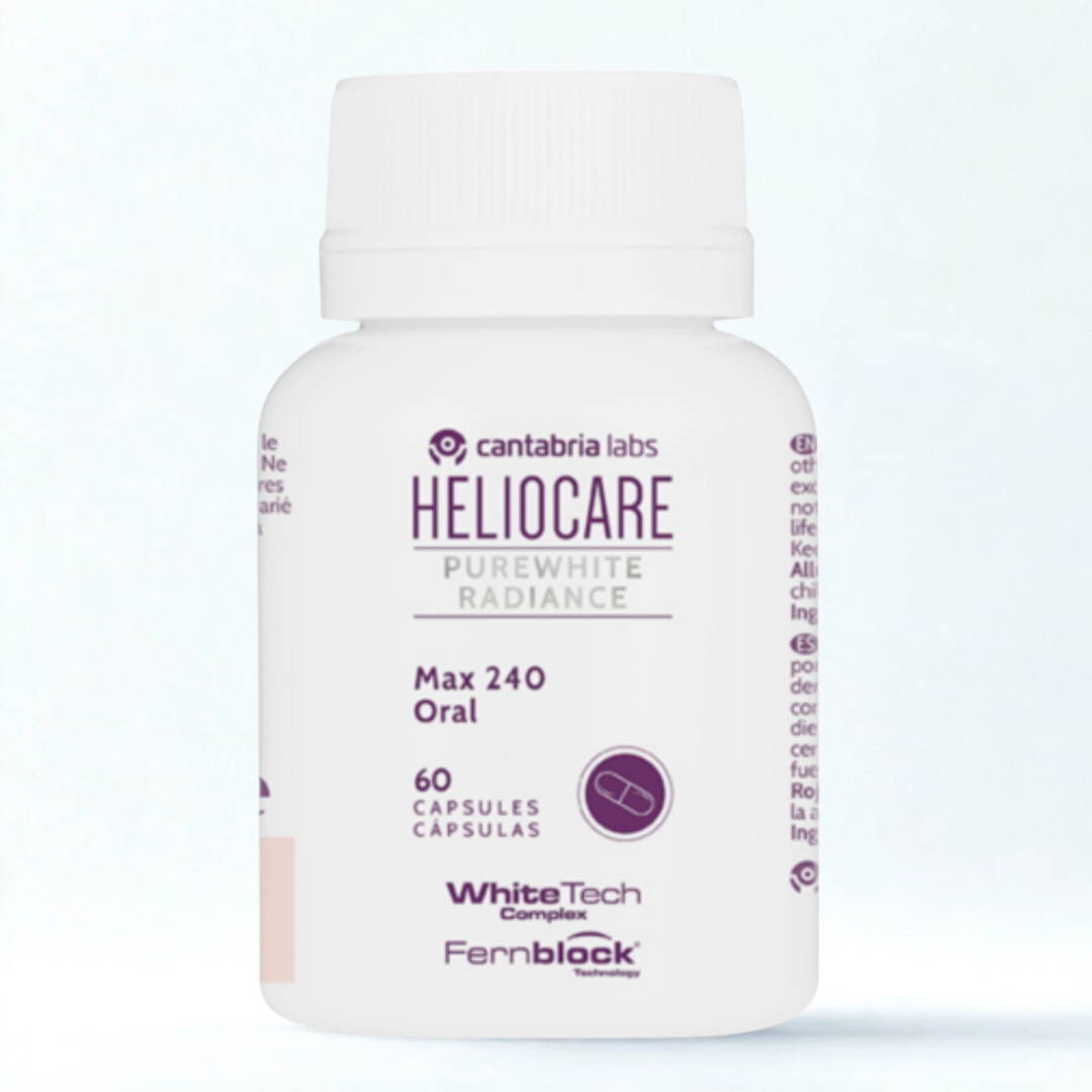 Elevate your skincare routine with Heliocare Purewhite Radiance Max 240. Fortified with Fernblock®, it offers exceptional UV protection, reducing free radicals by up to 50% to prevent hyperpigmentation and boost skin resilience against sunburn and redness by up to 300%. Plus, it slows skin aging by 55% by inhibiting collagen depletion. The exclusive White Tech Complex further inhibits melanin production for a radiant, fair complexion, while L-Cysteine promotes natural Glutathione synthesis to quench free radicals and prevent skin darkening. Unlock your skin’s radiant potential with Heliocare Purewhite Radiance Max 240.